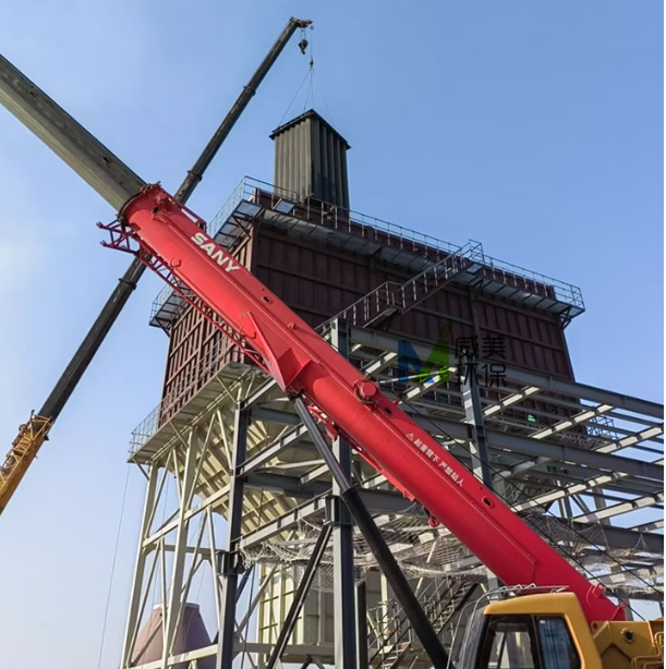 Hebei Weimei Environmental Protection is responsible for the supply and installation of the main body of this wet electrostatic precipitator, including the anode system, cathode system, upper and lower air chambers, gas distribution plate, anti-sway frame, high and low voltage electrical equipment, and distribution cabinets. The flue gas treatment capacity of this equipment is ≤ 220,000 m³/h, the flue gas temperature is < 70℃, and the gas inlet mode is the bottom-in and top-out type.